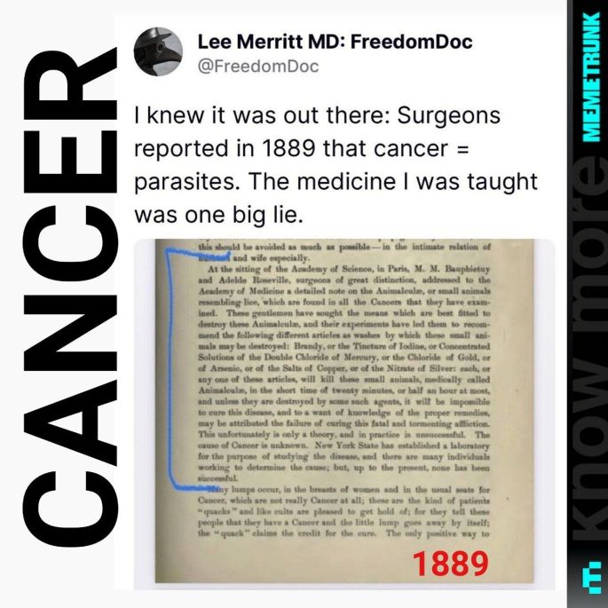 Beyond that, I’ll offer information on some holistic treatments that Big Pharma doesn’t want you to know about. Although I’m not a medical doctor and have no formal training in that arena, this will be easier to digest if you break it down into its simplest form – all cancers are parasitic. Cancer is a parasite. It survives and grows by attacking and consuming other cells.